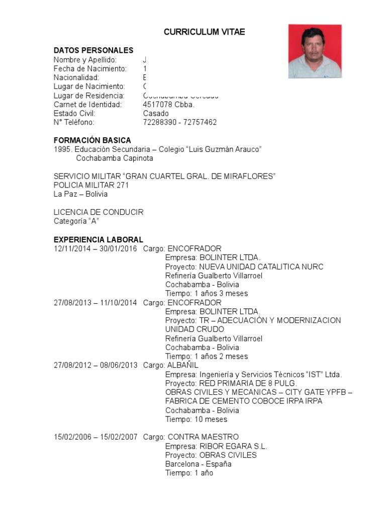 Currículum Vitae Ejemplos Bolivia / Curriculum Vitae 1 / Recomendaciones al elaborar un cv de estudiante.. Lo ideal, es que si decides usar una plantilla para tu curriculum, la adaptes a tus necesidades y requerimientos. Añade tus detalles e inmediatamente descarga tu cv en pdf. Juan de dios peza dirección. Ejemplos de currículum para estudiantes en pdf. Constituye, por tanto, tu mejor herramienta publicitaria.